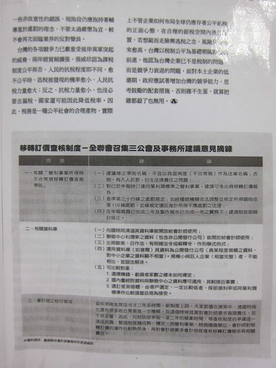 移轉訂價查核制度-全聯會召集三公會及事務所建議意見摘錄